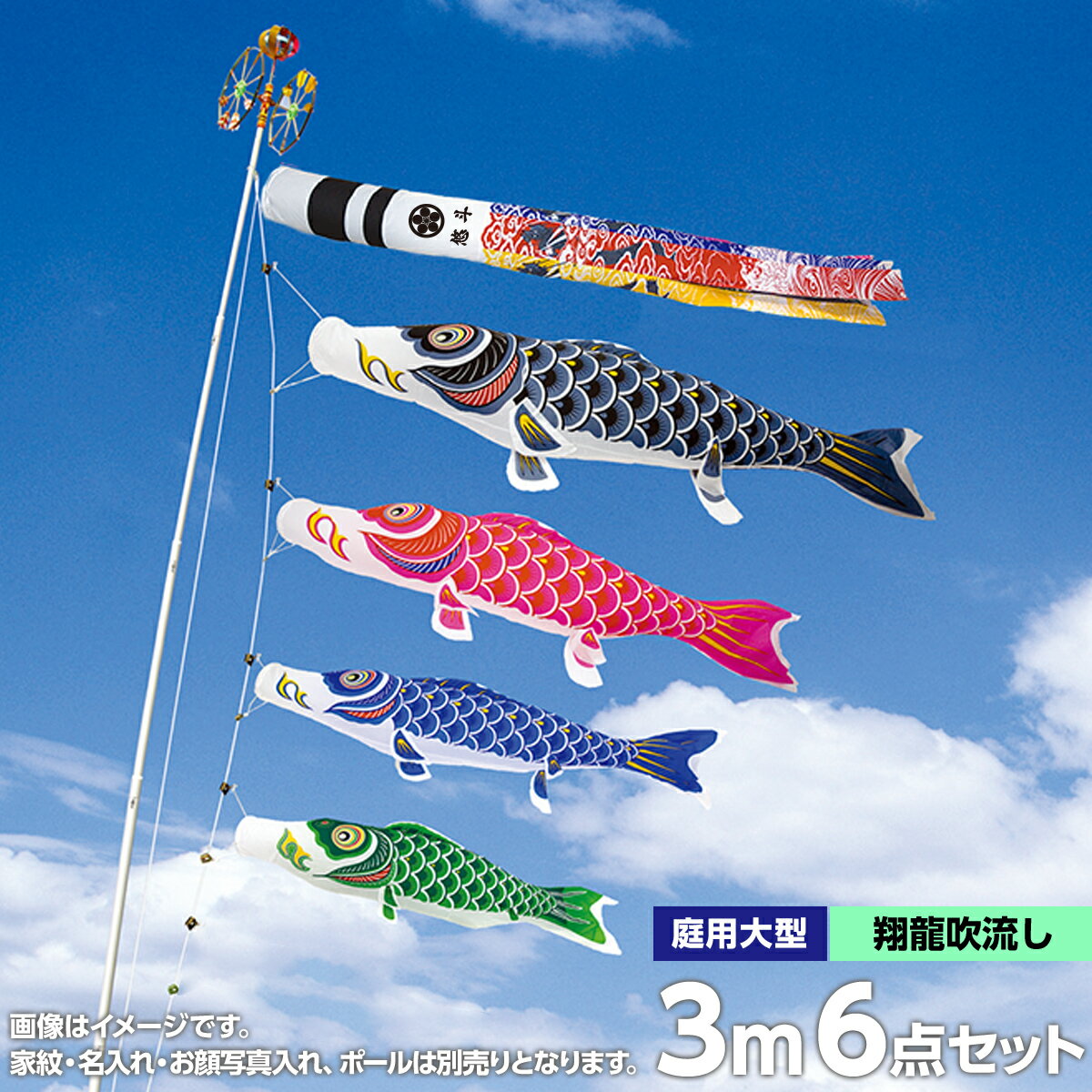 こいのぼり 鯉のぼり 庭園用 庭用 村上 鯉 【2019年 新作】 鯉幟 家紋入れ・名前入れ・お顔写真入れ可能 セット各種(翔龍吹流し(金太郎なし)・矢車・ロープ付き ※ポール別売) 「ナイロンスタンダード3m6点セット」(ガーデン用・ナイロン生地使用) 人形広場 天祥