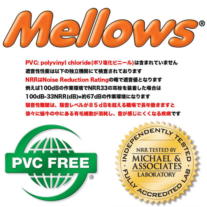Moldex Mellows Plugs Foam Earplugs, Made In USA 使い捨て耳栓 メロウズ 圧力が小さくコンパクトな形状は長時間の着用に 100%PVCフリー NRR 30 とても目立つ色なので、装着有無の確認が素早く、簡単に行えます テーパー式の形状により、挿入も取り外しも簡単に行えます 耳穴が小さい方でも安心フィット[注意] この商品はメール便にてポスト投函となります 代引き決済はご利用頂けませんのでご了承下さい